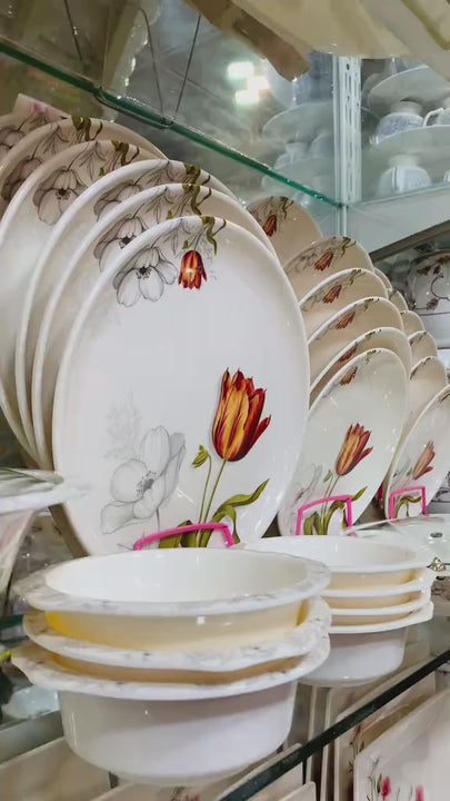 Crystal Coated 100% Double Glaze" collection with a floral design. It features an elegant look with the durability of melamine.