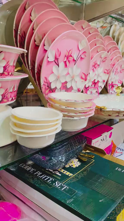 Crystal Coated 100% Double Glaze" collection with a floral design. It features an elegant look with the durability of melamine.